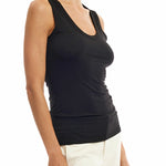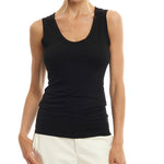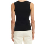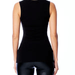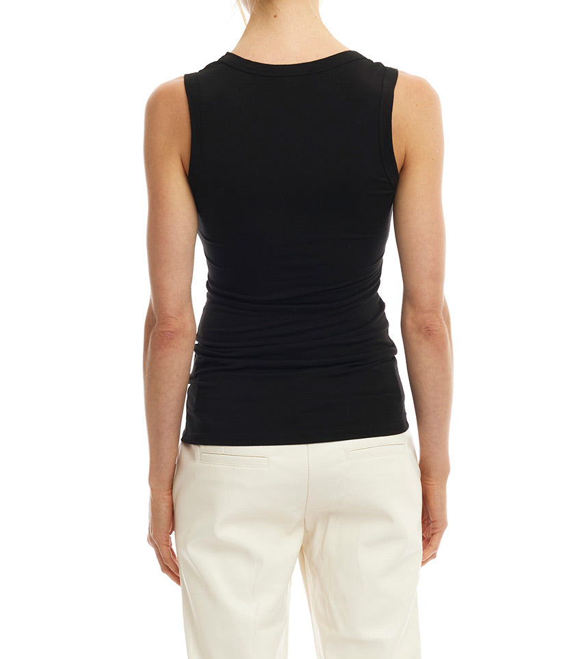 casual sleeveless, v-neck tank with and banded neckline and arm holes in black
