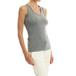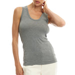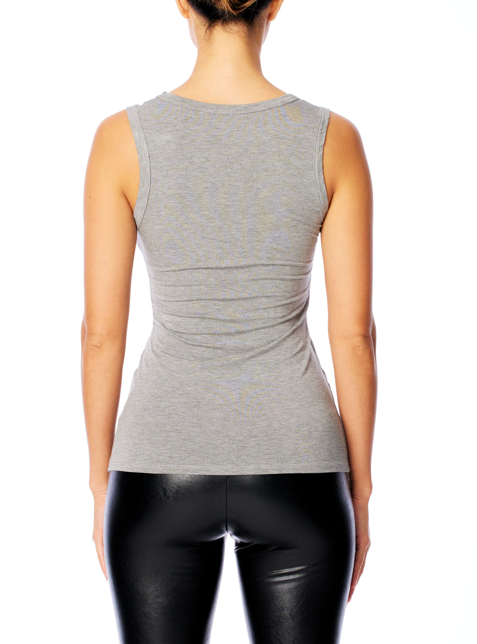 casual sleeveless, v-neck tank with and banded neckline and arm holes in heather grey