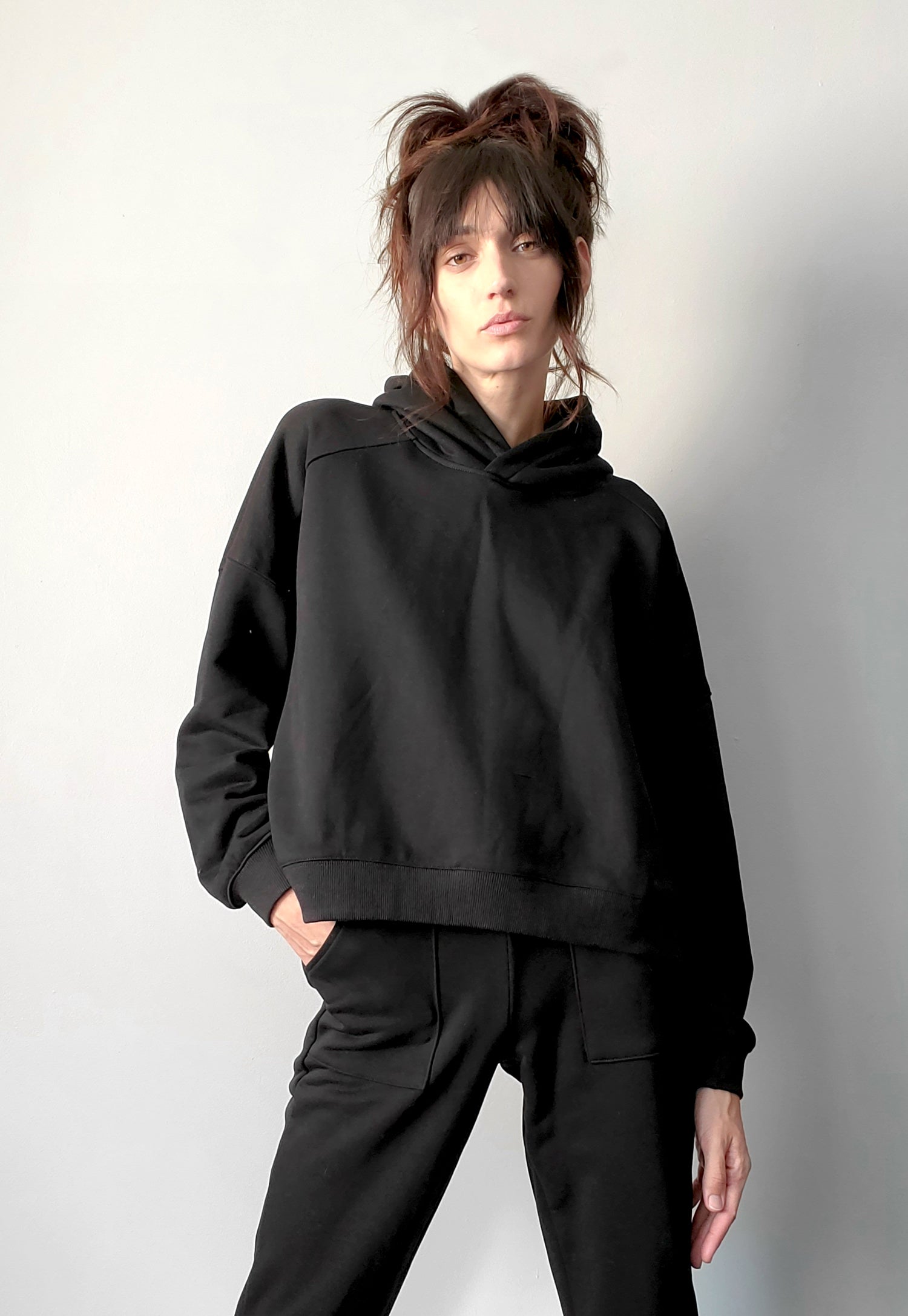 Hoodie with long sleeves, hood, arm seam detailing, ribbed hem and cuffs in black
