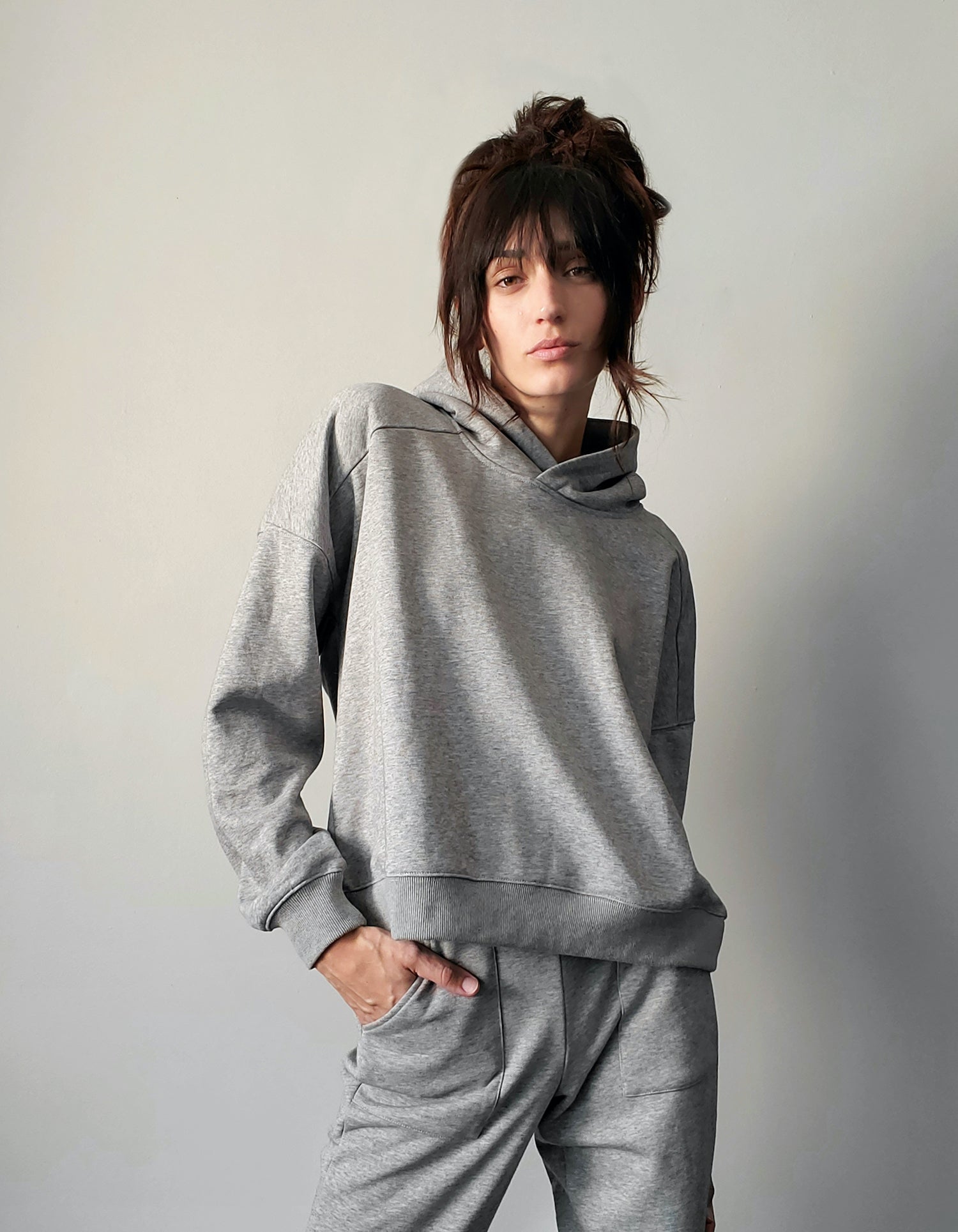 Hoodie with long sleeves, hood, arm seam detailing, ribbed hem and cuffs in heather grey