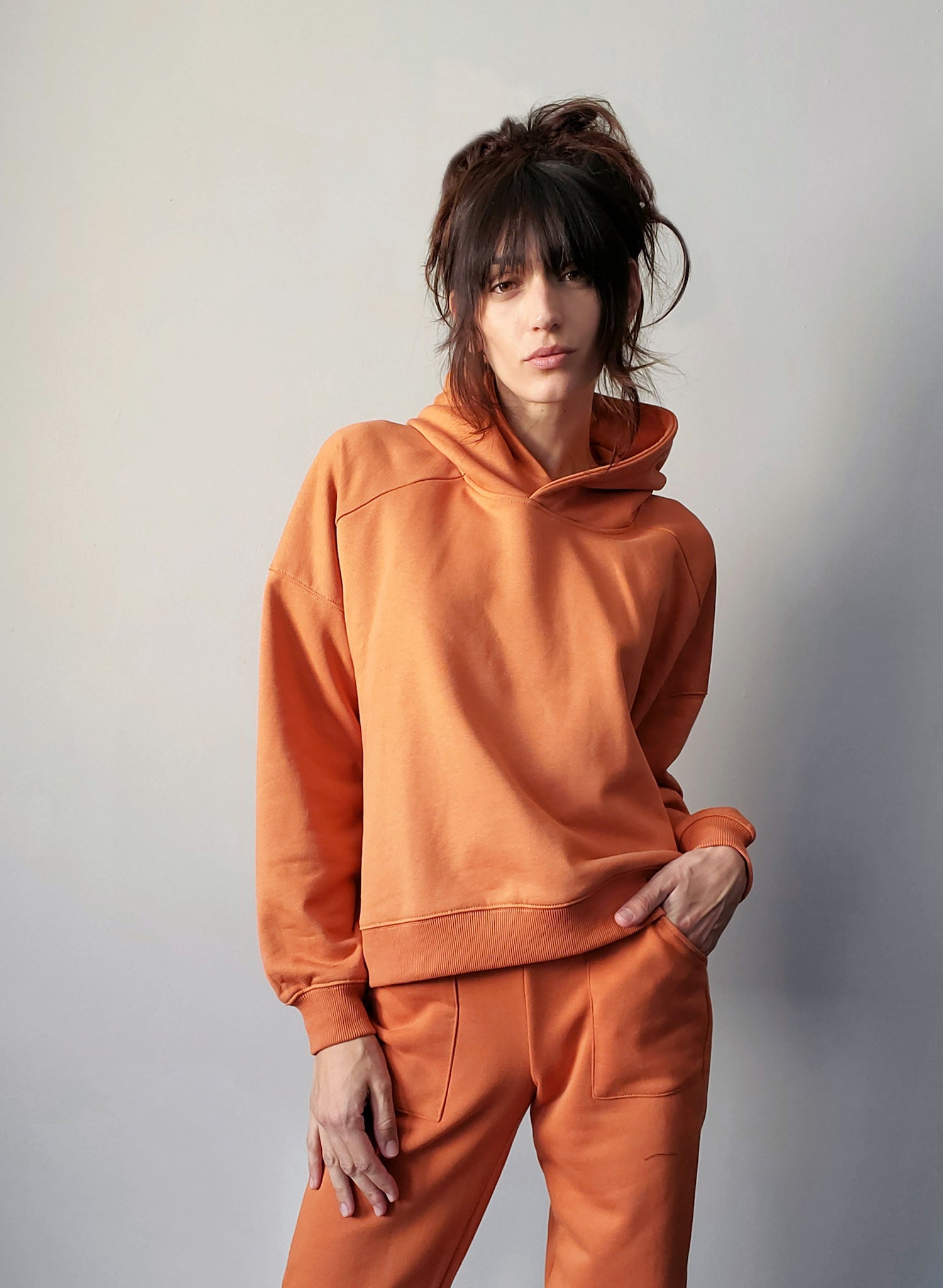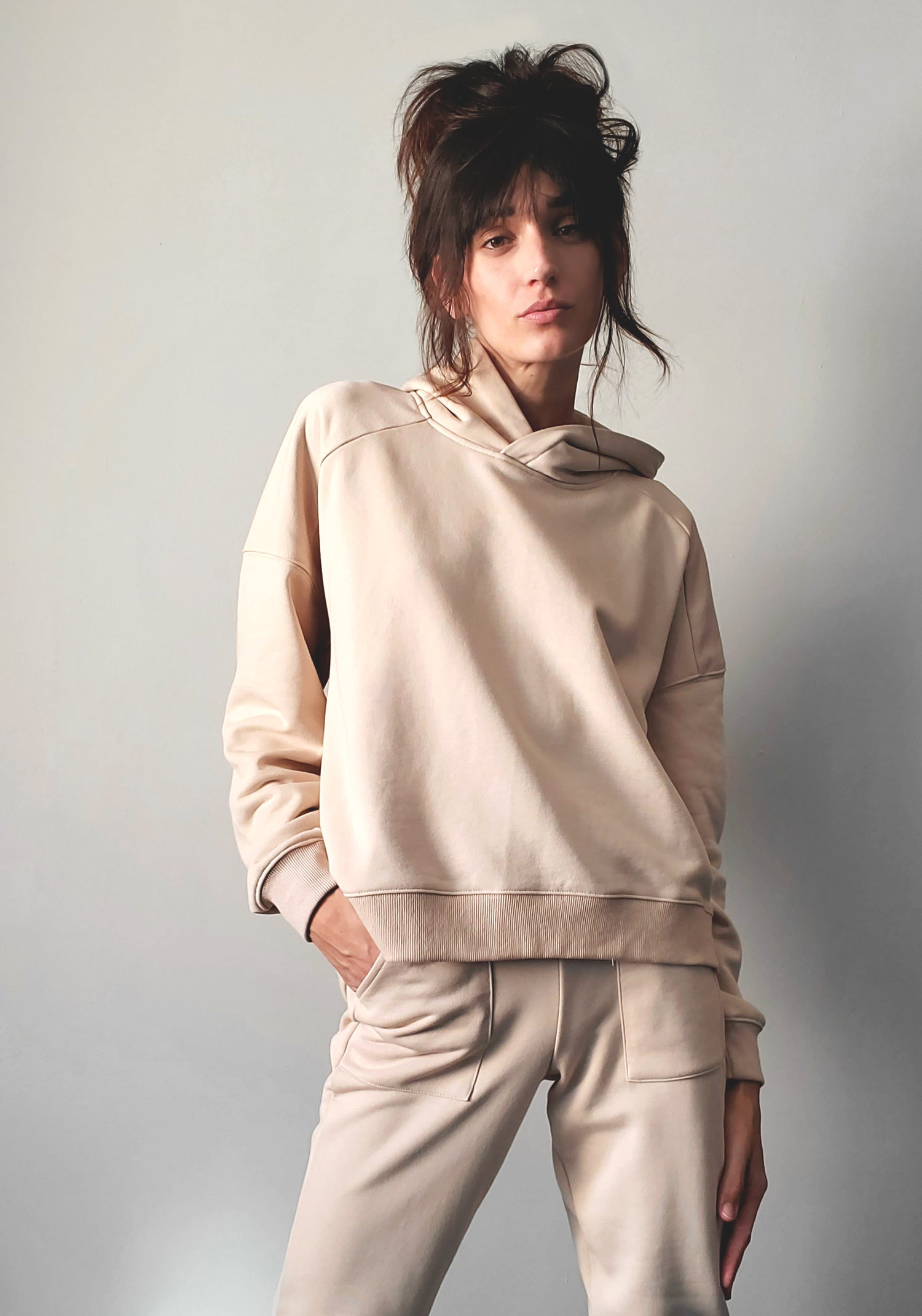 Hoodie with long sleeves, hood, arm seam detailing, ribbed hem and cuffs in sand