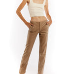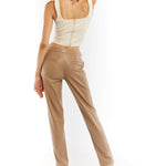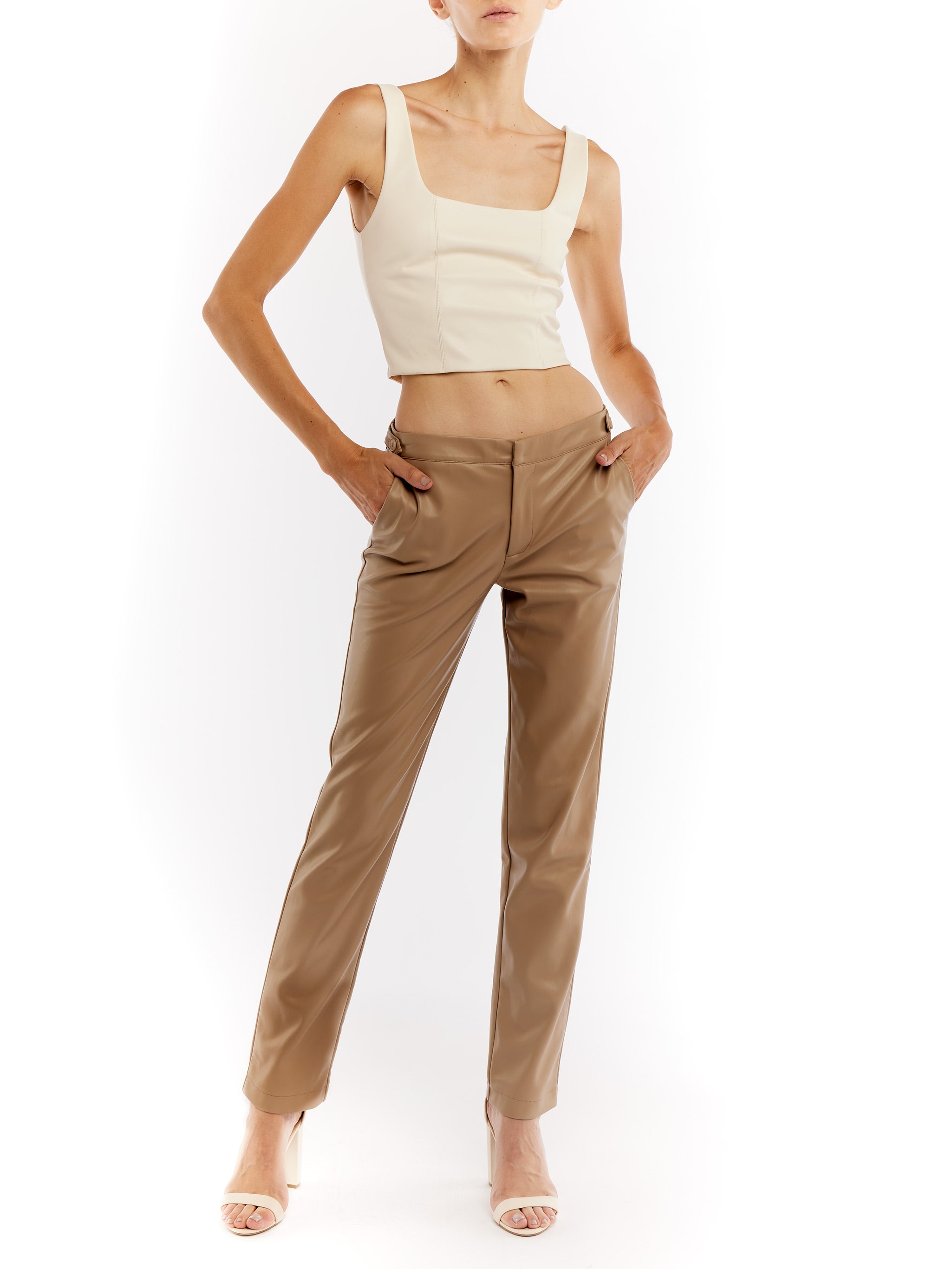 Chloe faux leather trousers with side button waist tabs and pockets in taupe