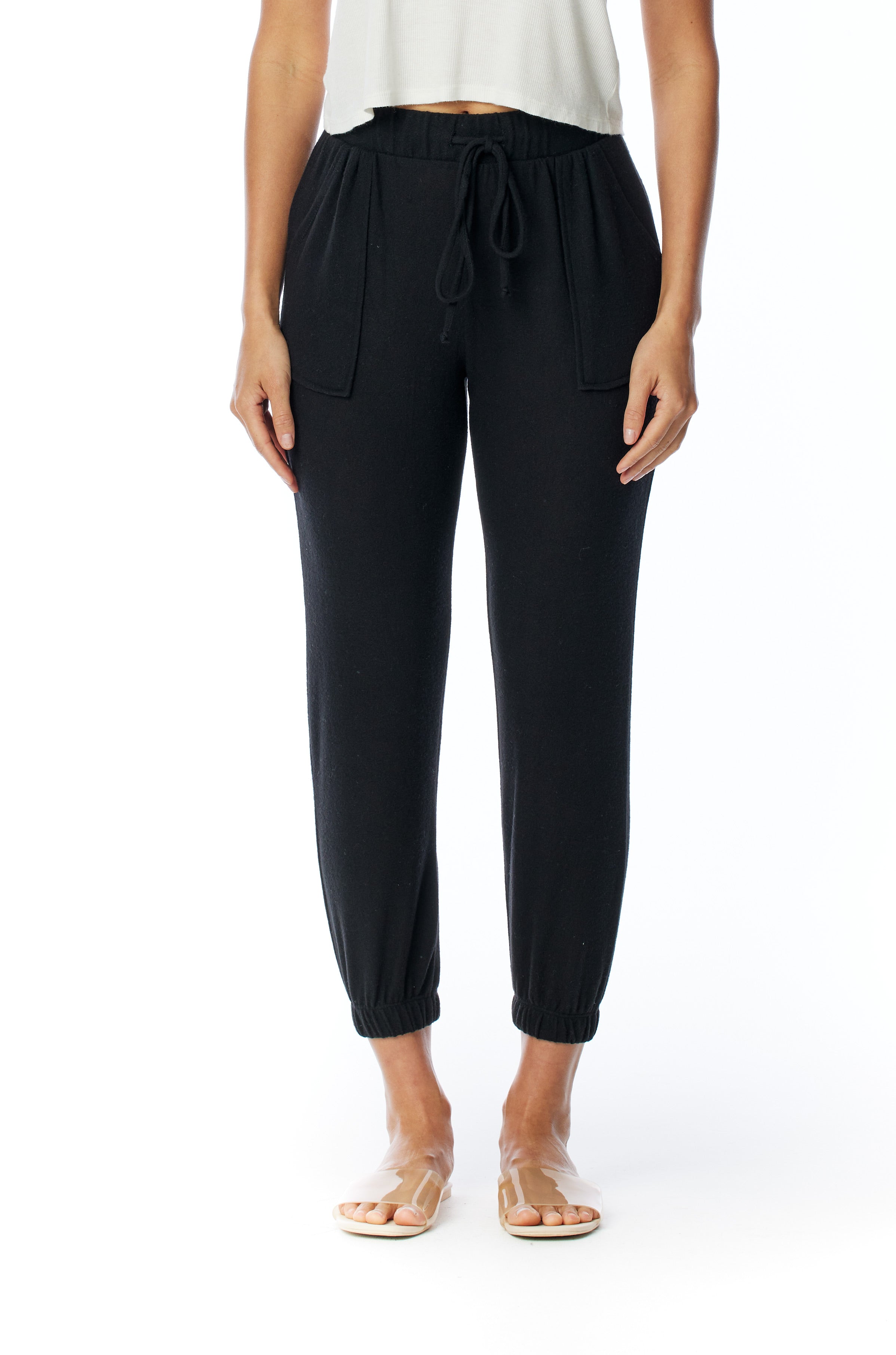 relaxed pocket pant with drawstring, elasticized waist and cuffs in black