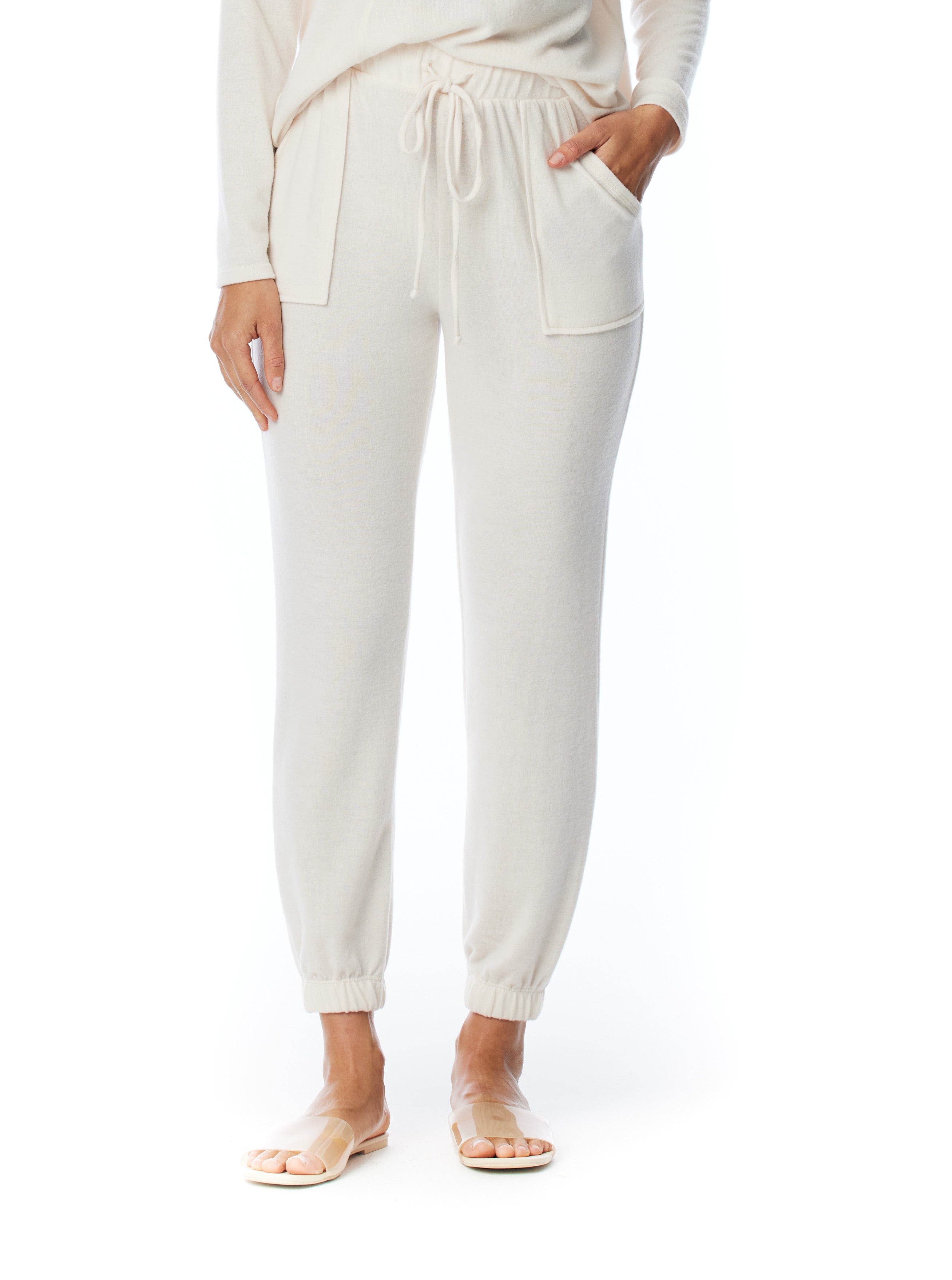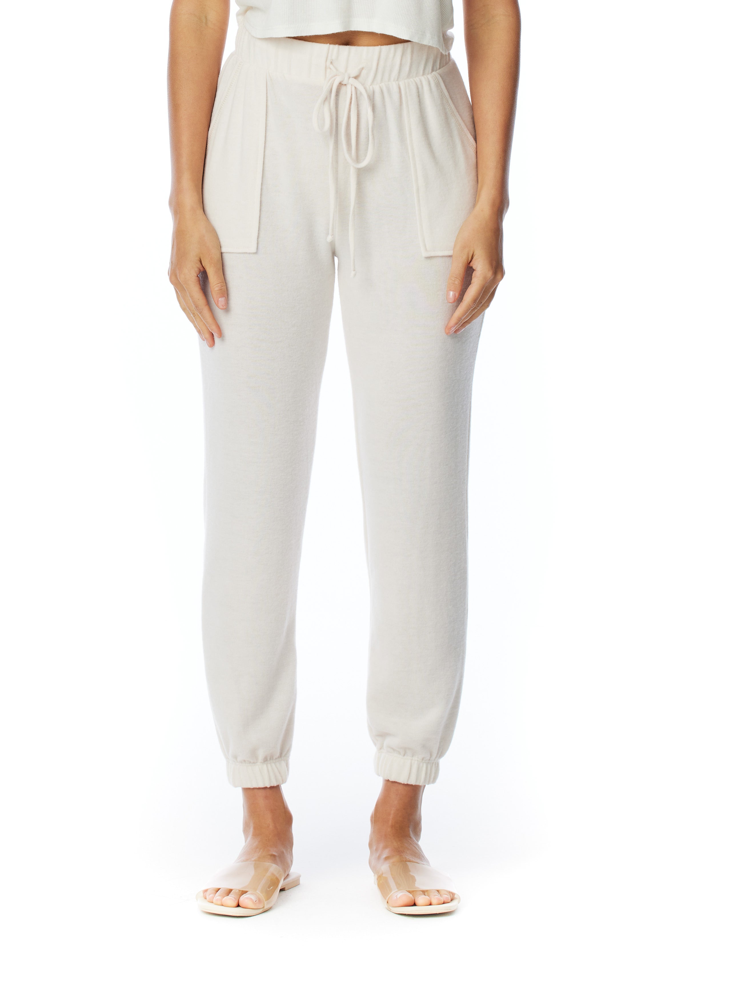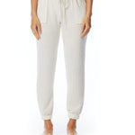 relaxed pocket pant with drawstring, elasticized waist and cuffs in cream