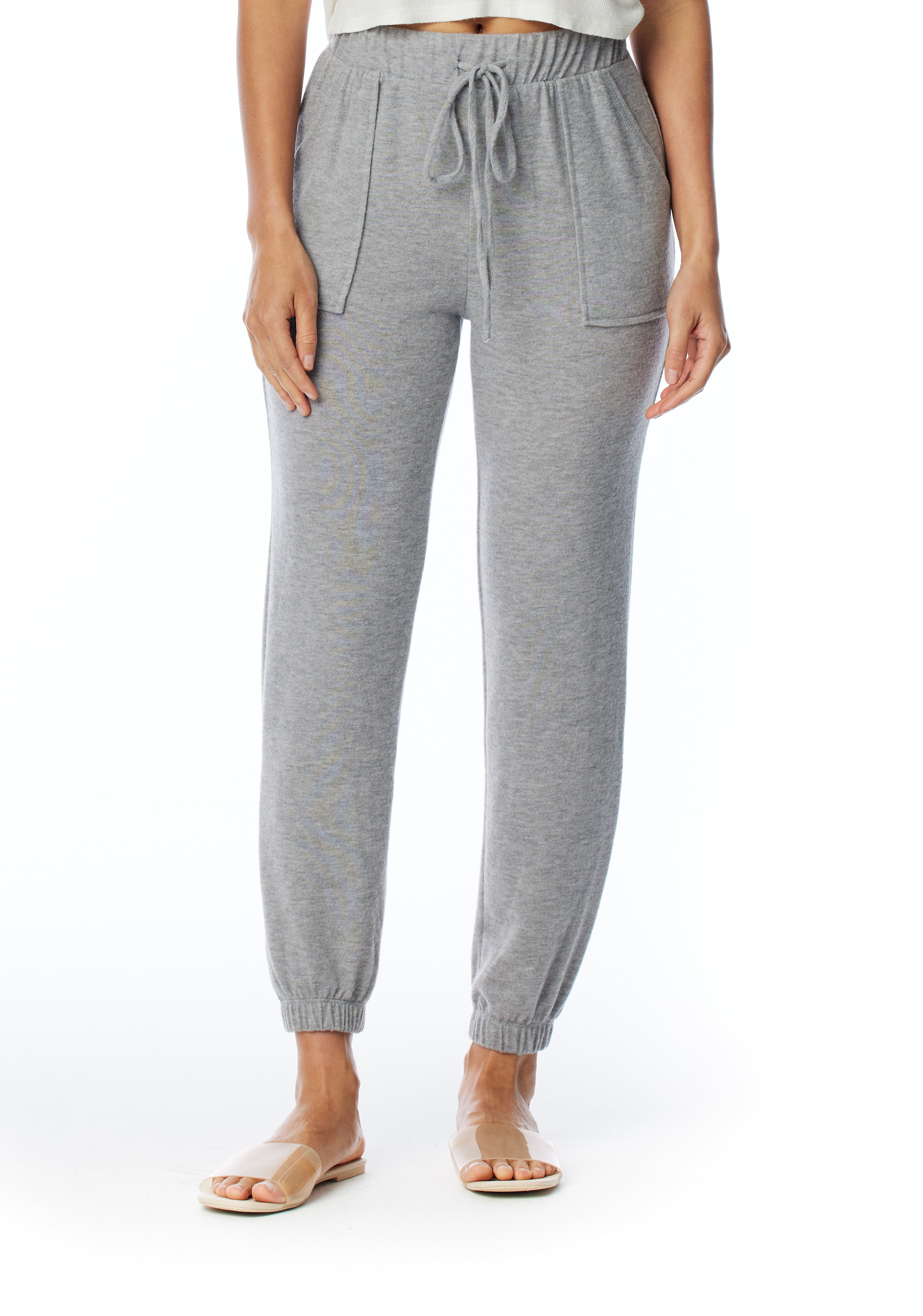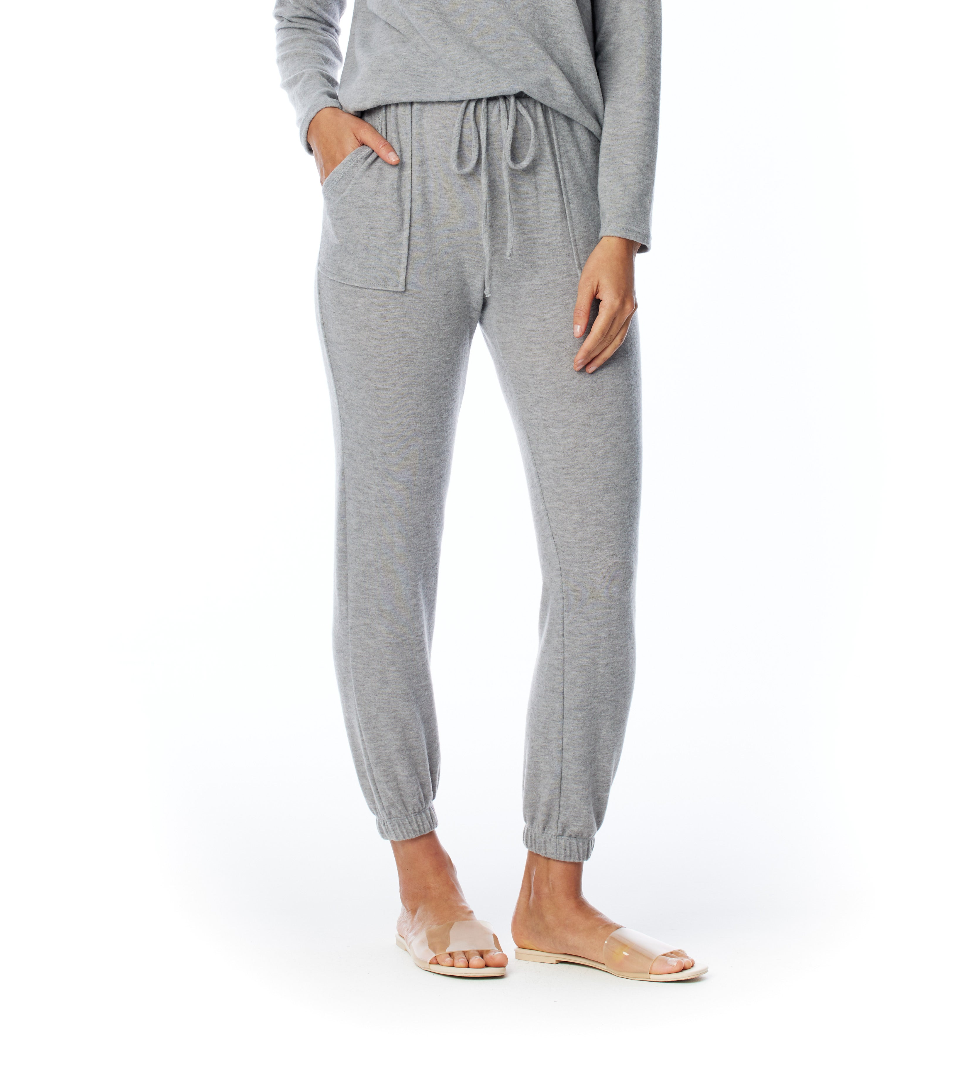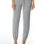 relaxed pocket pant with drawstring, elasticized waist and cuffs in heather grey