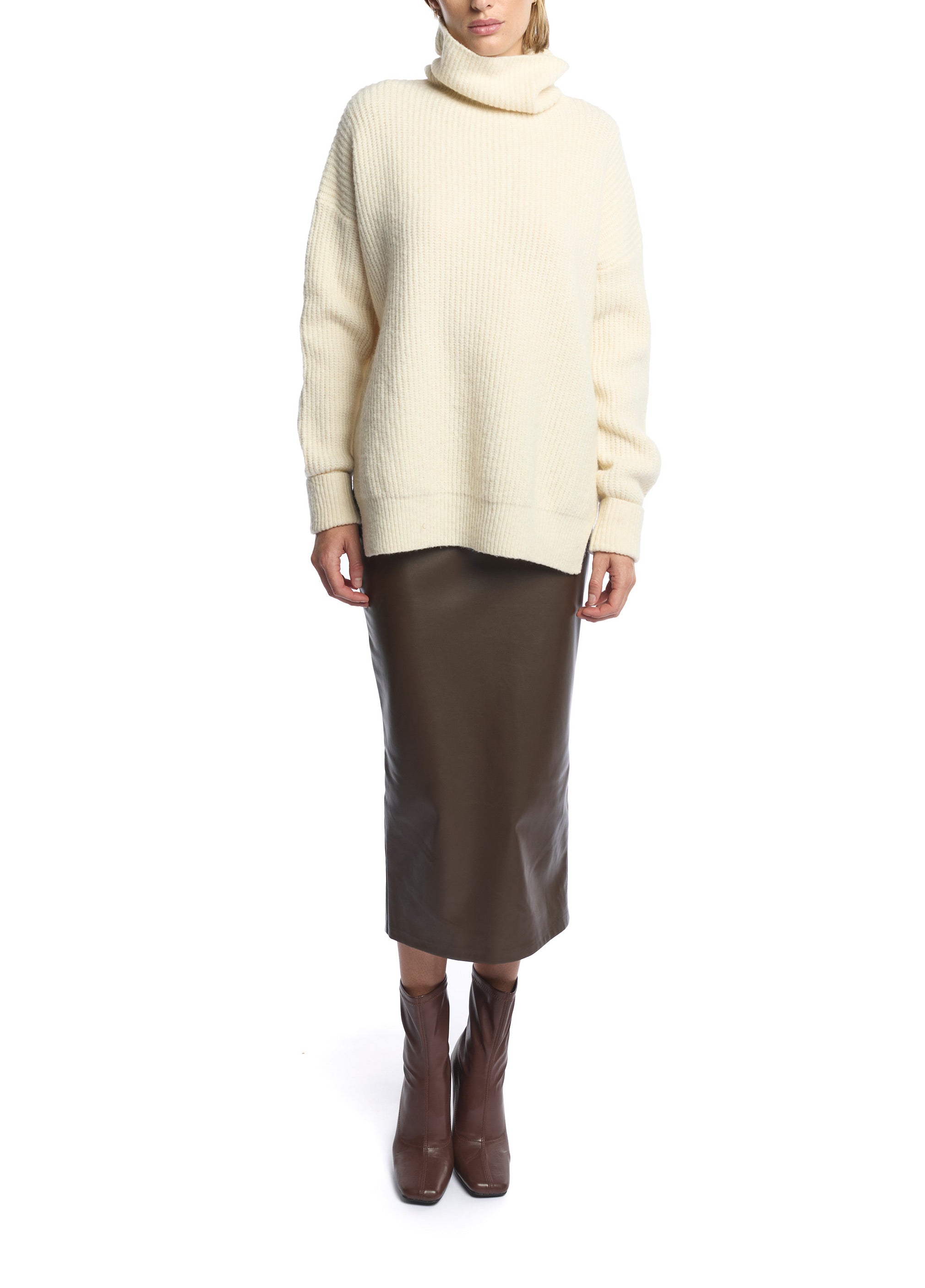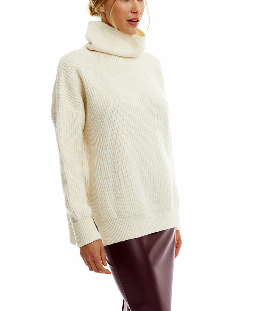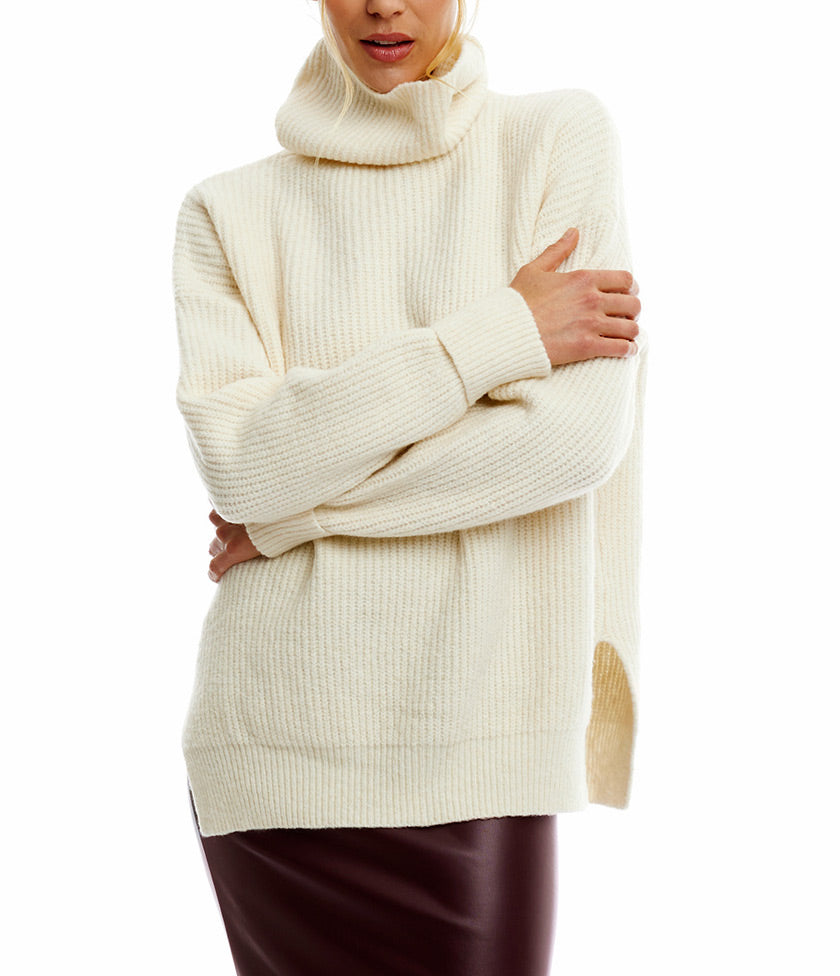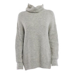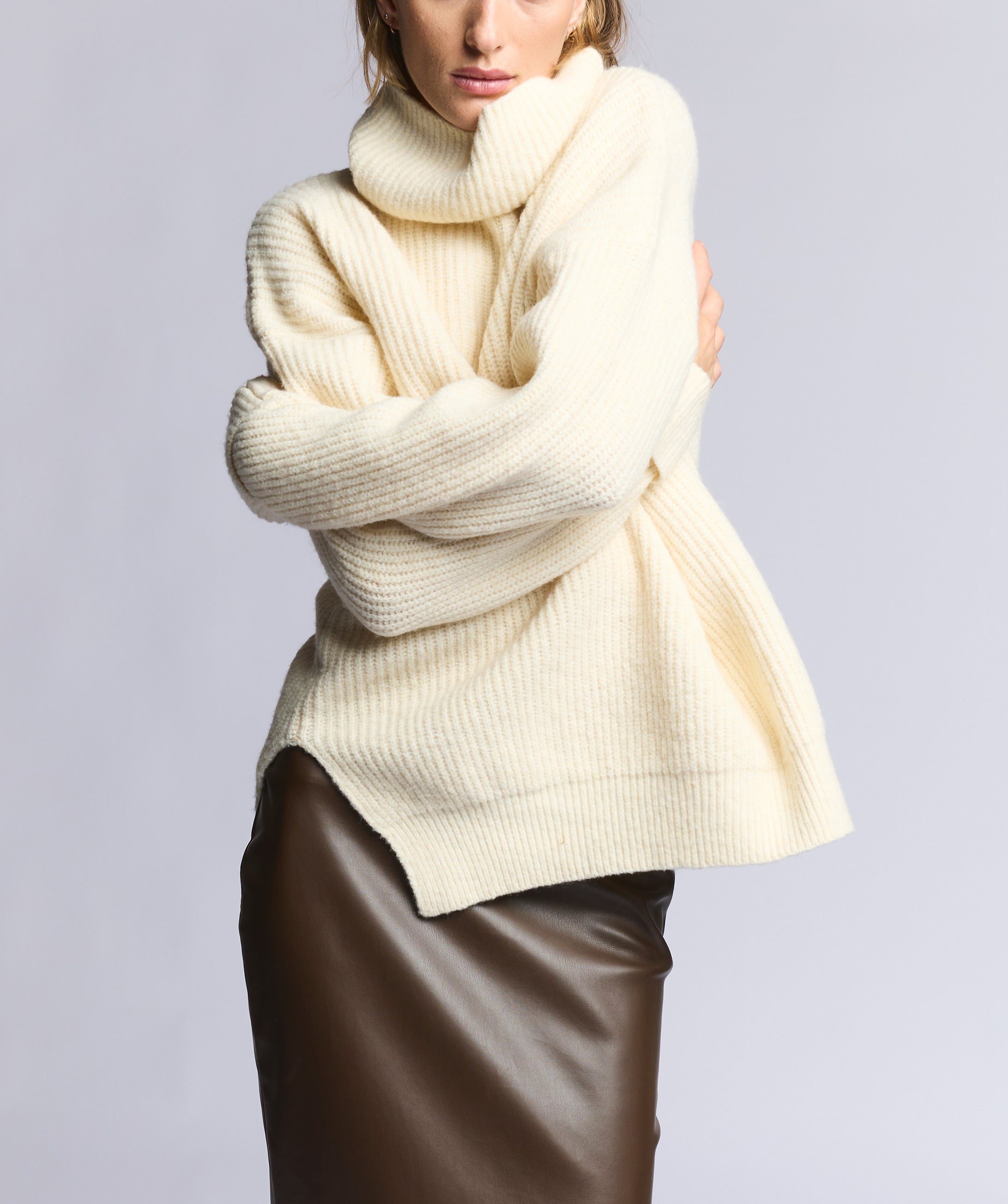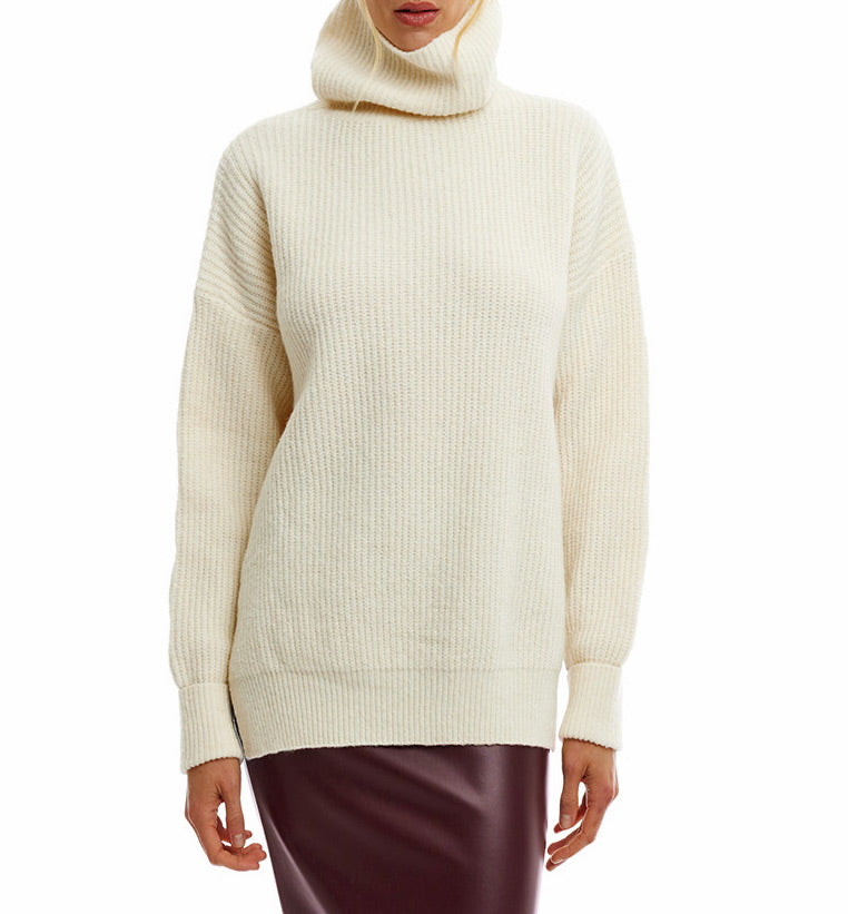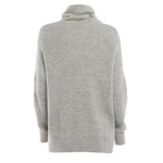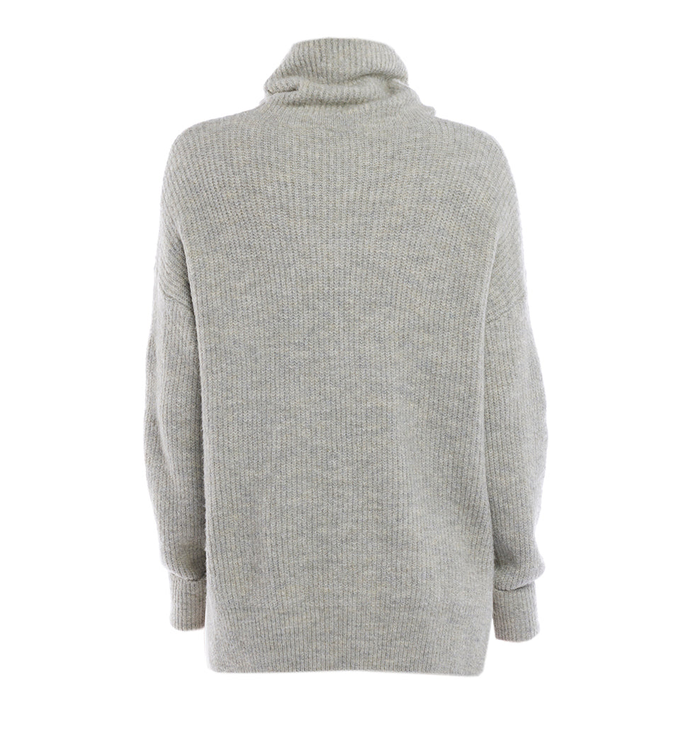 vegan knit, turtleneck sweater featuring long sleeves, a relaxed fit, small side slits and a drop shoulder seam in grey