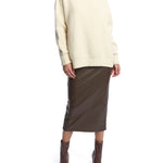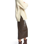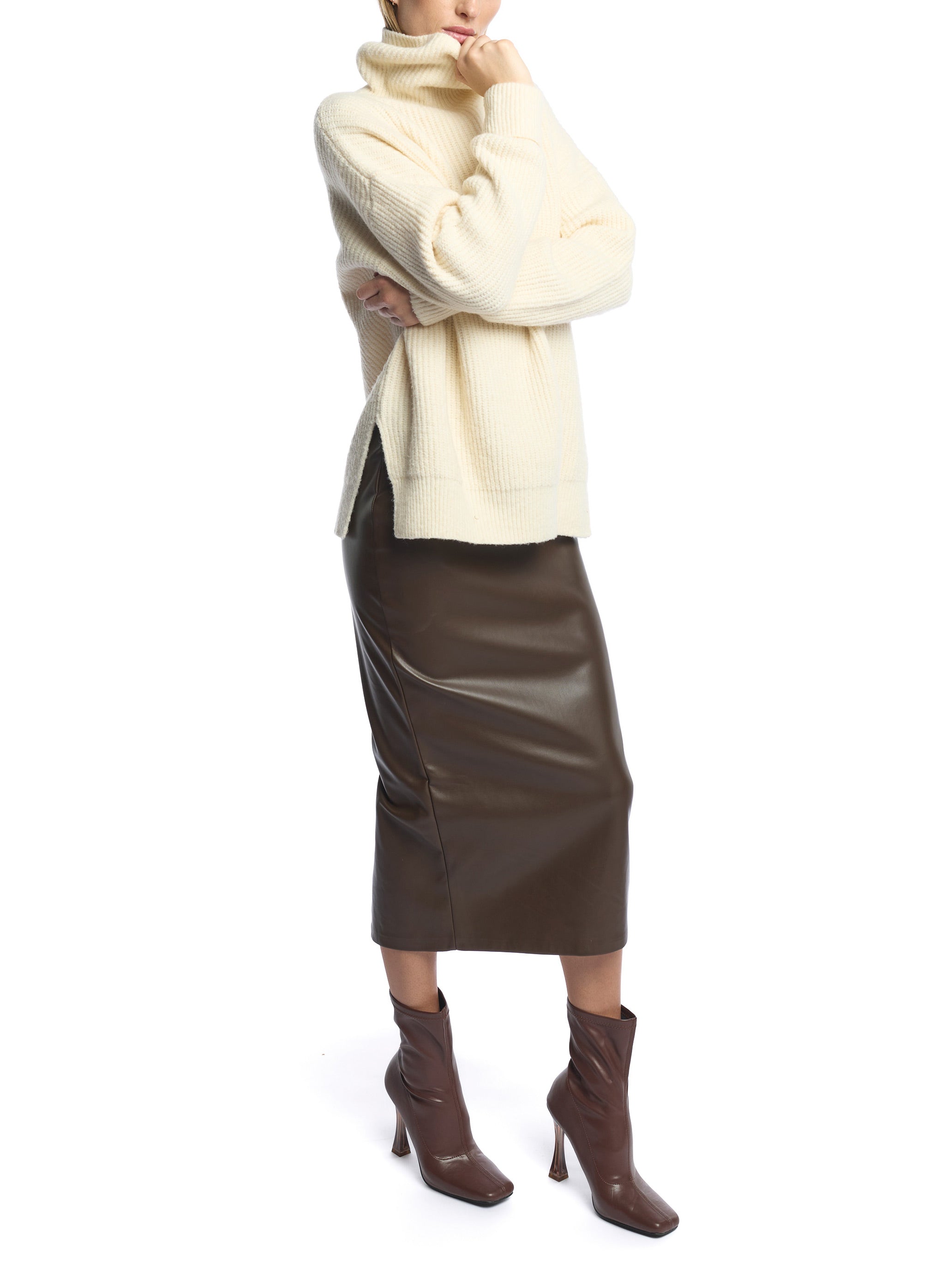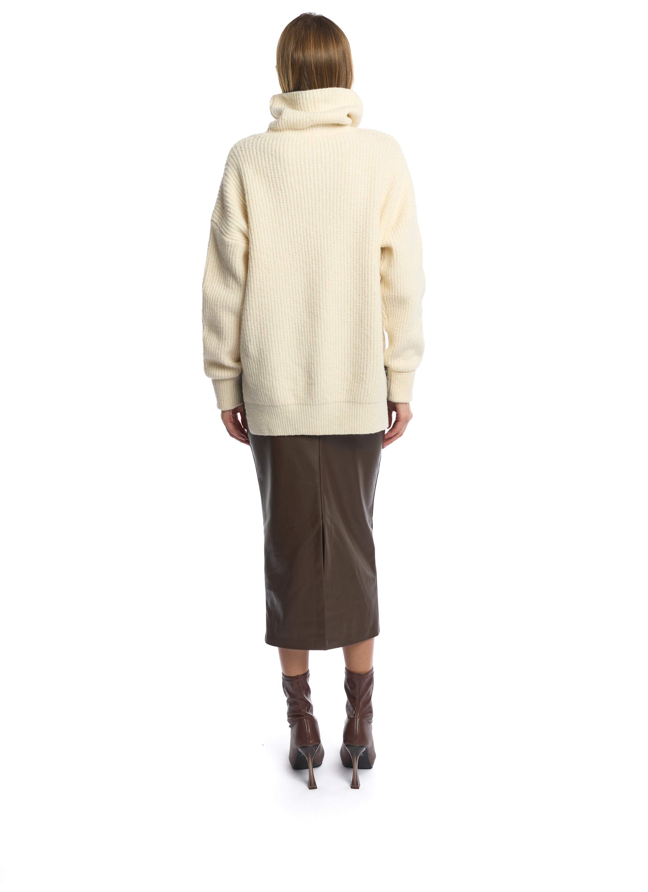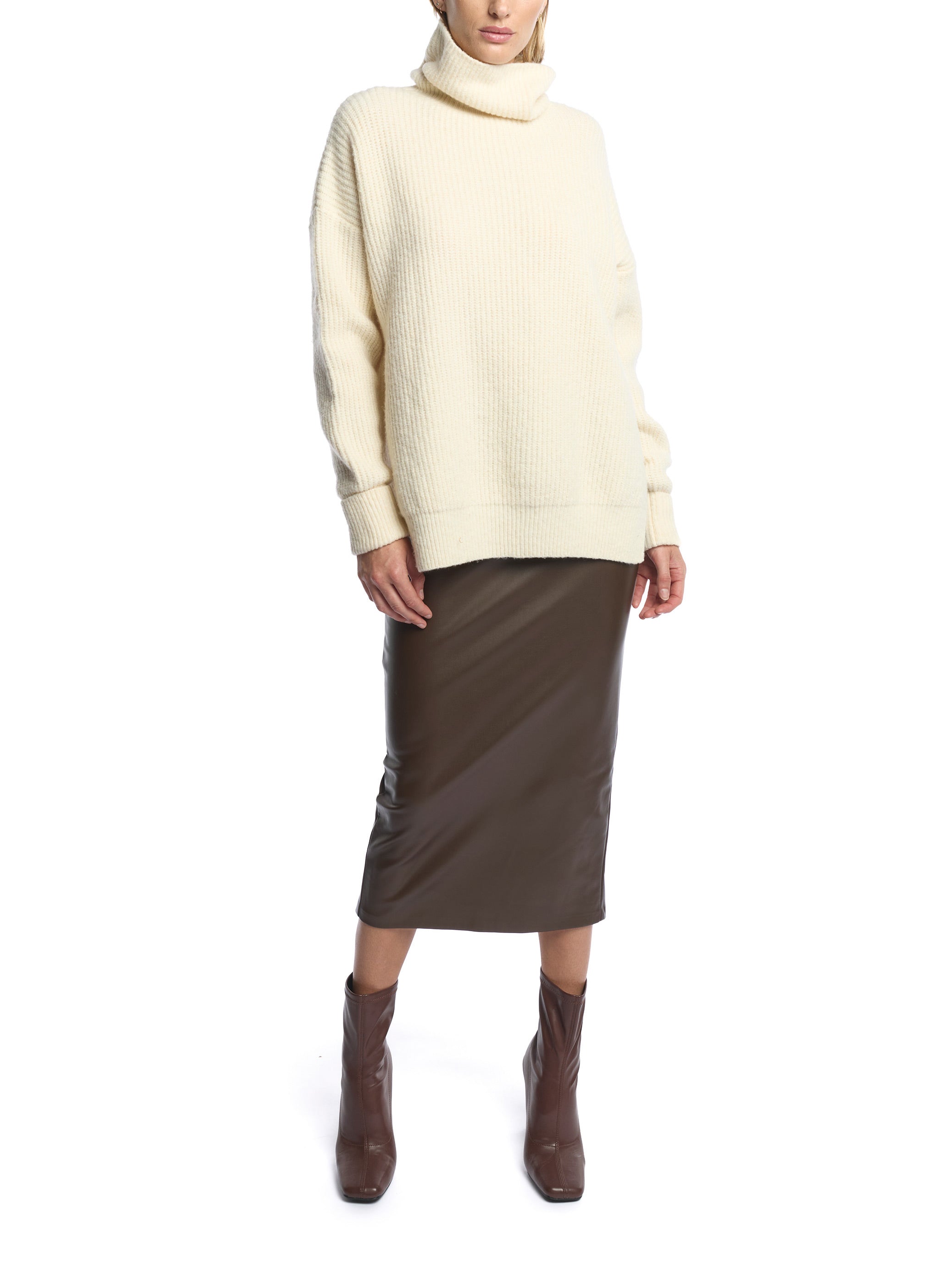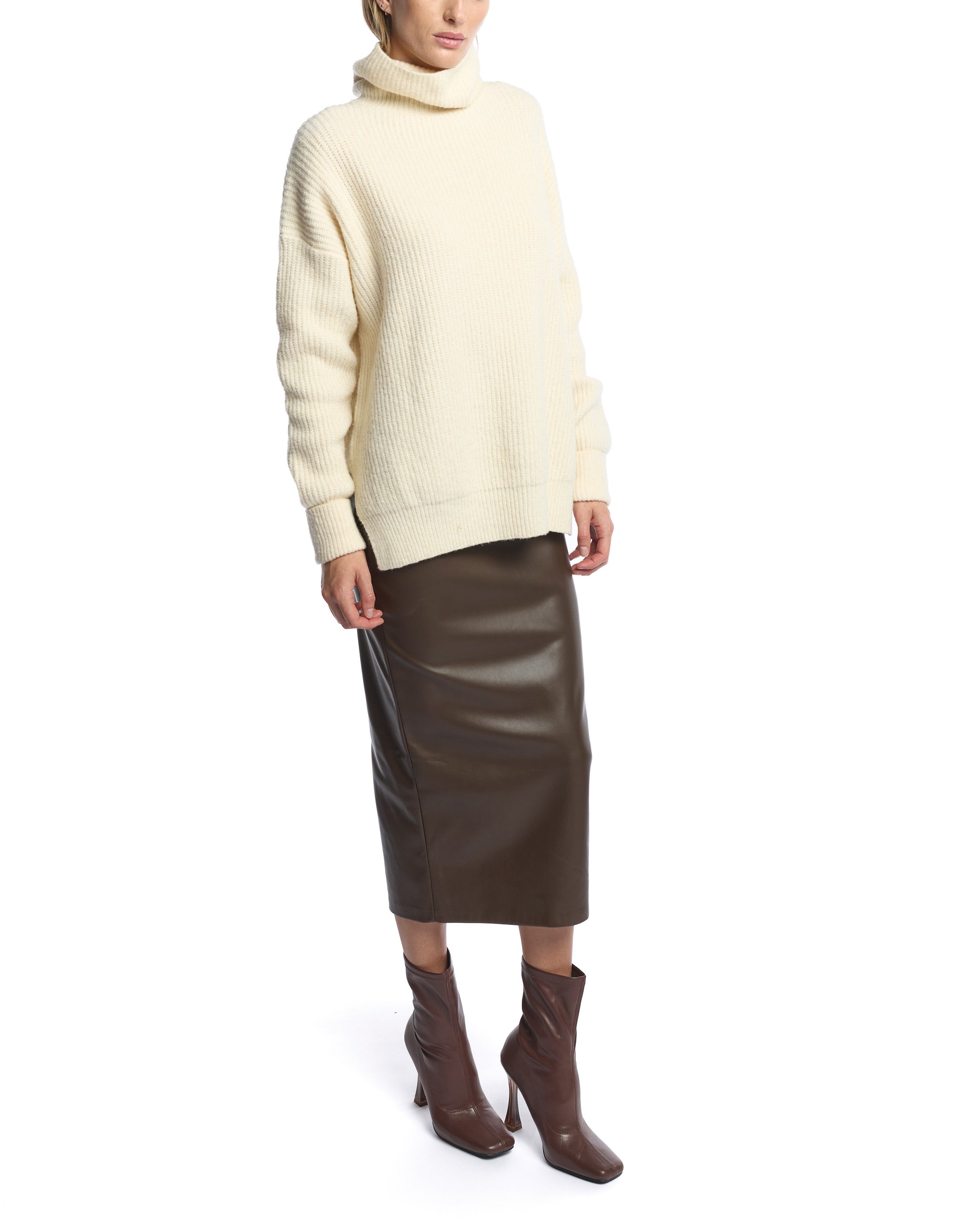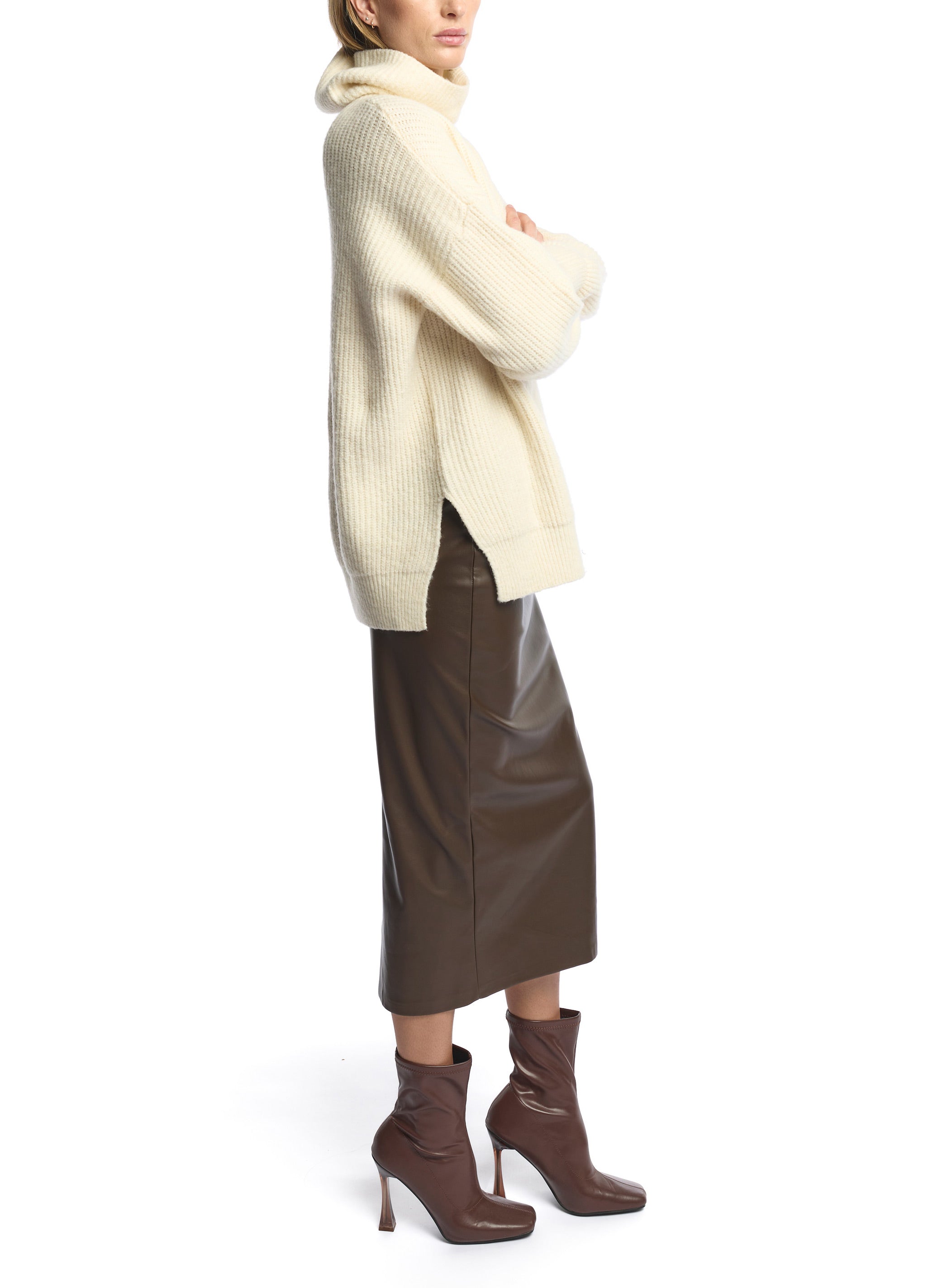 vegan knit, turtleneck sweater featuring long sleeves, a relaxed fit, small side slits and a drop shoulder seam in grey