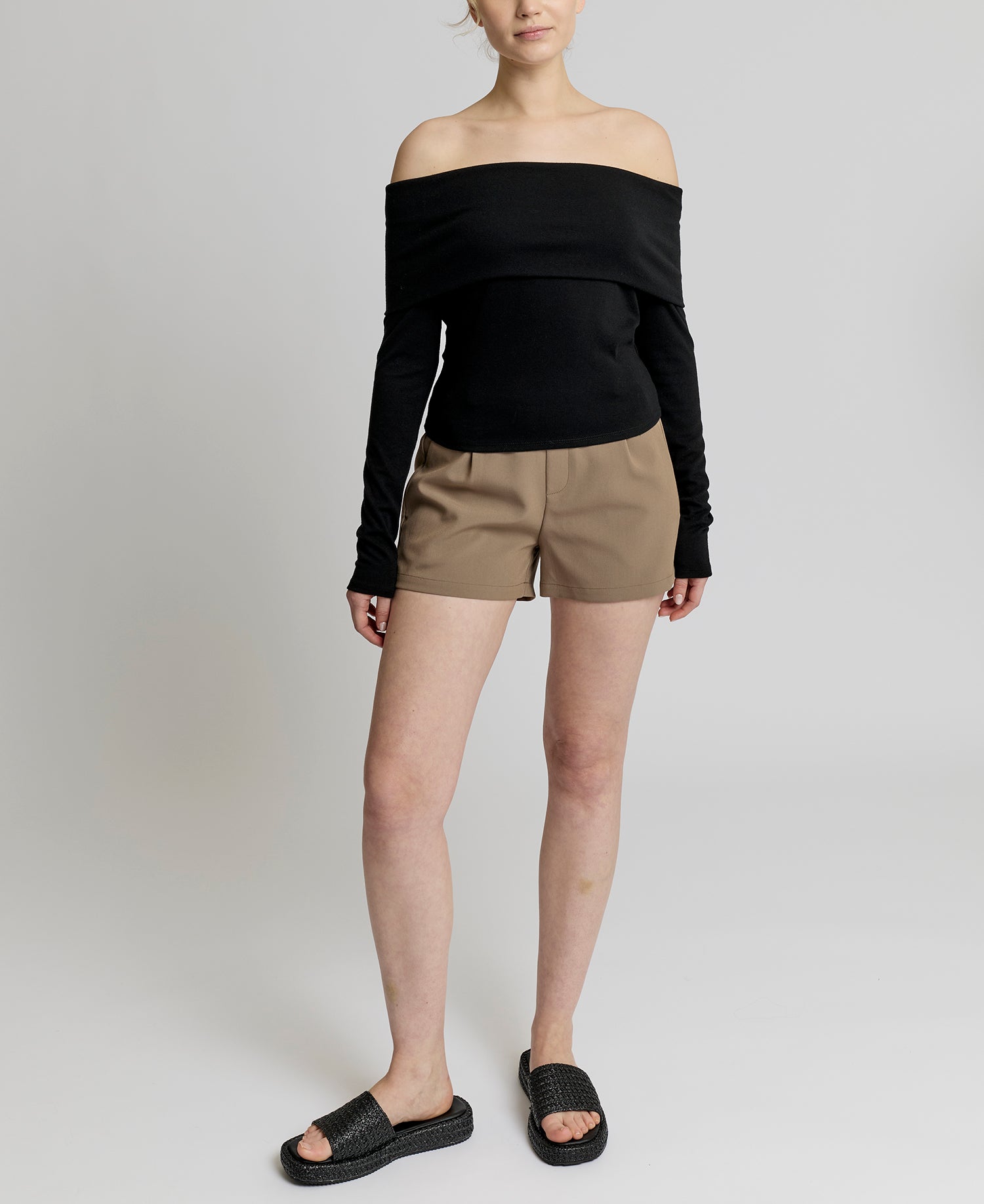 • Fold over, off-the-shoulder neckline